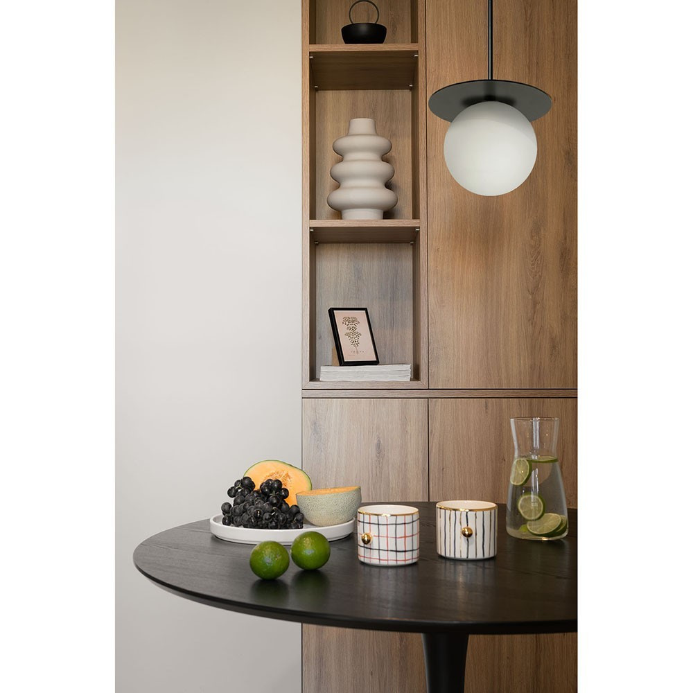 BORRA B är en pendellampa från BORRA-kollektionen från UMMO - en kollektion som, i enlighet med sitt namn, borrar sig in i ditt minne och din interiör och stannar där i flera år. Dess uttrycksfulla form bygger på kombinationen av en mjölkvit glasskärm och en pulverlackerad metallskiva - en duo som fångar blicken men som inte dominerar utrymmet.