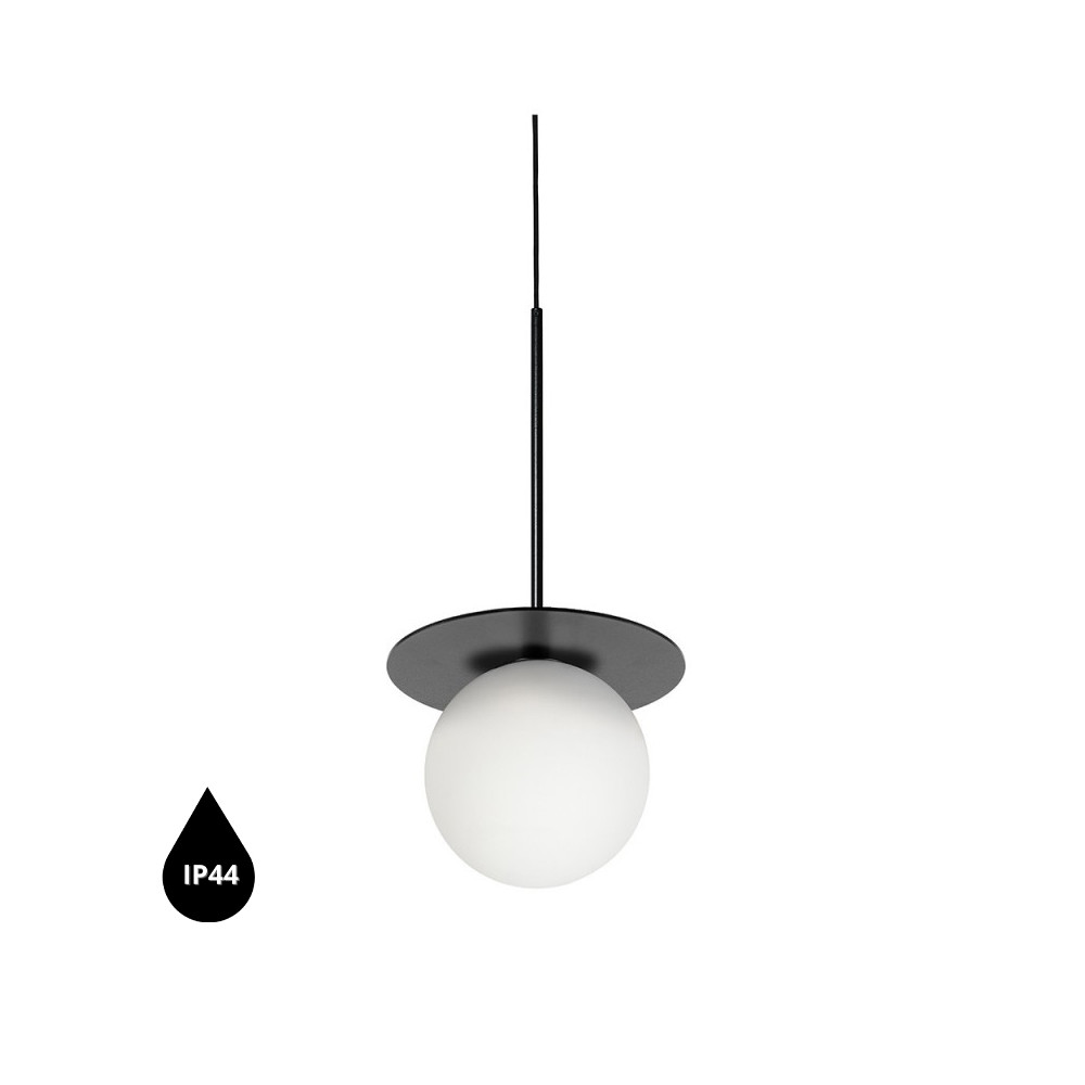 - taklampa, pendellampa - svart (Jet Black RAL 9005) - material metall, glas - längd 20cm - bredd 20cm - höjd 15,1cm - total längd 130cm - mjölkvit glasdiffusor ⌀15cm - svart bas ⌀8cm med skiva ⌀10cm - svart skiva ⌀20cm - svart polyesterflätad kabel 84,6cm - tråd G9 - max 12W LED - IP44