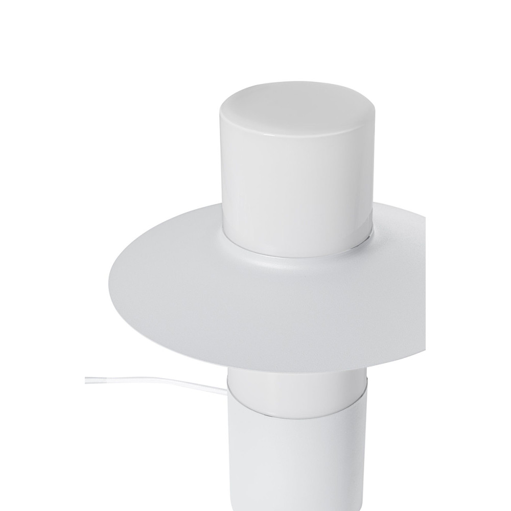 - bordslampa - vit (Signal White RAL 9003) - material metall, glas - längd 28cm - bredd 28cm - höjd 34,3cm - vit metallfot - vit glasdiffusor ⌀11,2cm - vit polyesterflätad kabel 150cm - vit metall hattformad diffusor - E27-gängad - max 15W LED - IP20