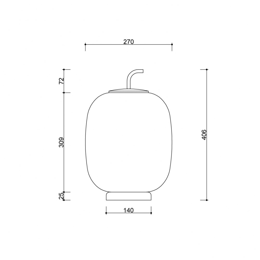 EPLI ST är en 40,6 cm hög bordslampa tillverkad av pulverlackerad metall och blåst glas. Lampskärmen har en diameter på 27 cm och en höjd på 30,9 cm och avger ett mjukt, diffust ljus som inte bländar ögonen.