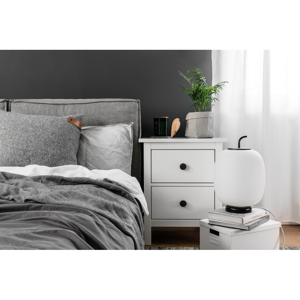 EPLI ST är en bordslampa som bevisar att enkelhet kan ha ett starkt, dekorativt uttryck. Dess form är en kombination av minimalistisk geometri med en raffinerad finish - en stor, mjölkvit glasskärm vilar på en cylindrisk metallbas och skapar en modern, harmonisk silhuett. Kontrasten mellan den strukturerade svarta basen och det sammetslena ljuset från lampskärmen skapar en effekt som är mysig och elegant på samma gång.