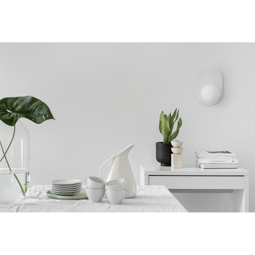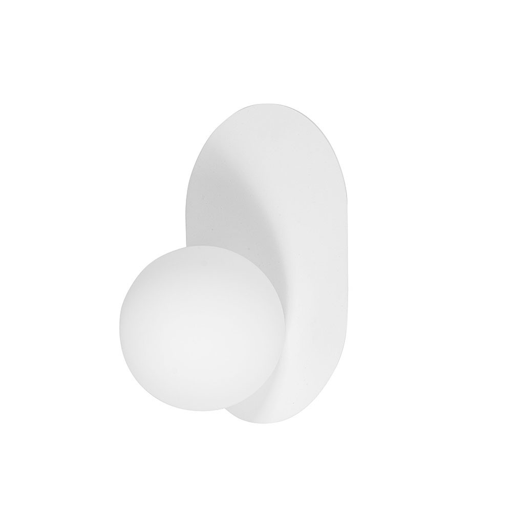 - vägglampa / väggfäste - metall / glas - vit / vit - höjd 30cm - bredd 21cm - djup 18cm - glasdiffusor 15cm i diameter i matt vit - väggfäste målat i strukturell vit - tvåledarkabel 2 X 0,75mm2 - gänga G9 - max 12W