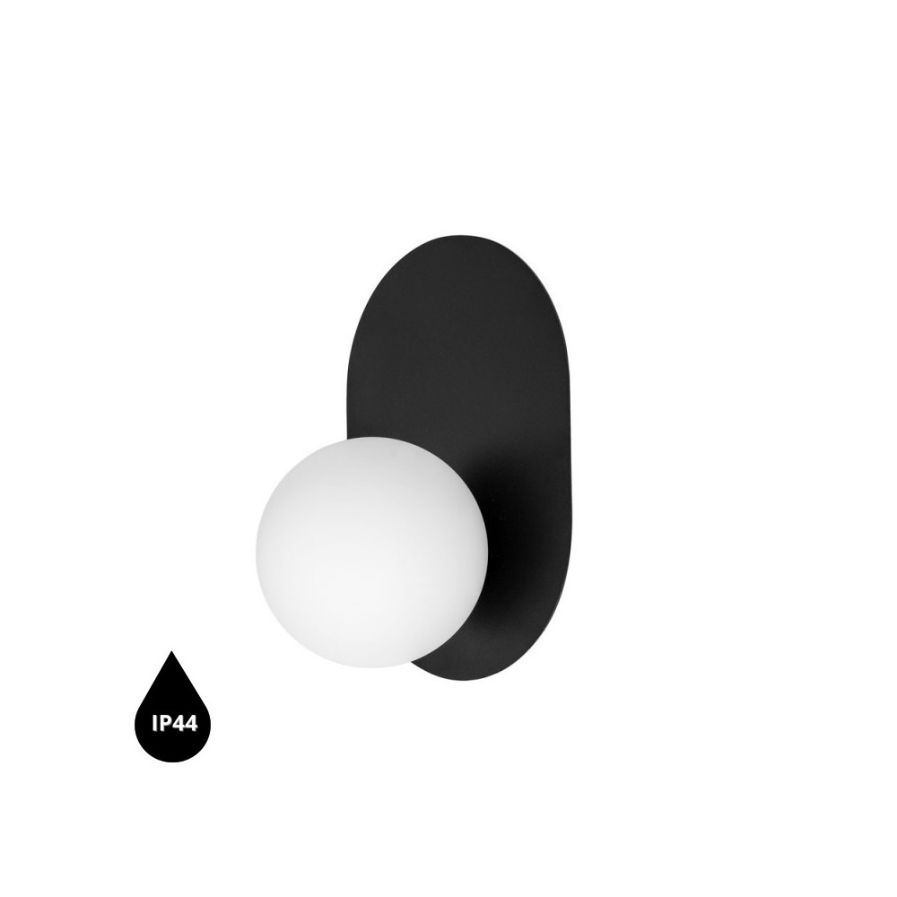 - vägglampa / väggfäste - metall / glas - svart / vit - höjd 30cm - bredd 21cm - djup 18cm - glasdiffusor 15cm i diameter i matt vit - väggfäste målat i strukturell svart - tvåledarkabel 2 X 0,75mm2 - gänga G9 - max 12W - IP44