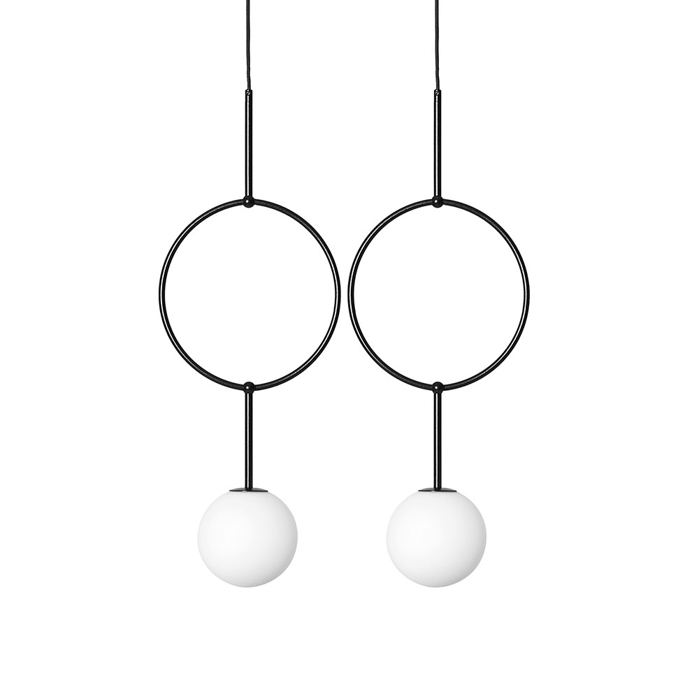 -taklampa, taklampa -svart, vit - material metall, glas - höjd 160cm - bredd 60cm - djup 15cm - 2x vit glaslampskärm ⌀15cm - 2x svart ram med rund ring - svart polyesterflätad kabel - svart metalluttag 40cm - tråd G9 - max 12W -...