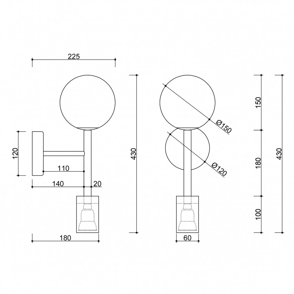 - vägglampa, väggfäste - svart färg (Jet Black RAL 9005) - material metall, glas - längd 22,5cm - bredd 15cm - höjd 43cm - diffusor i mjölkvitt glas ⌀15cm - svart spot ⌀6cm - väggfäste målat i strukturell svart - tråd G9, GU10 - max 12W LED (G9), max 10W LED (GU10) - IP20