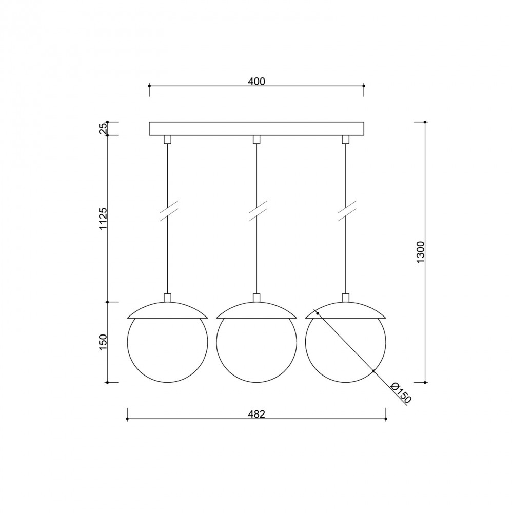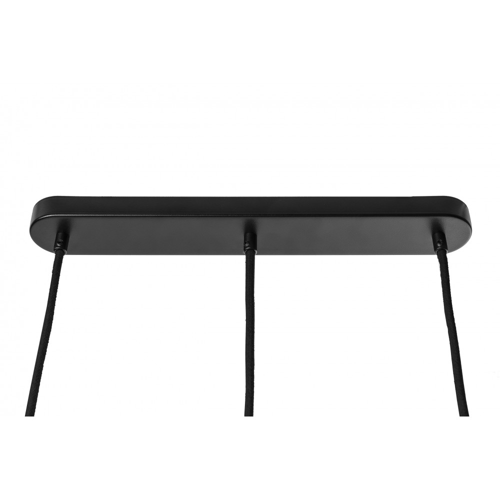 - taklampa, pendellampa - svart (Jet Black RAL 9005) - material metall, glas - längd 48,2cm - bredd 15cm - höjd 15cm - total längd 130cm - tre mjölkvita glaslampskärmar ⌀15cm - strukturellt svartlackerat fäste - 3x svart flätad polyestersladd 112,5cm - G9 tråd - max 3x12W LED - IP20.