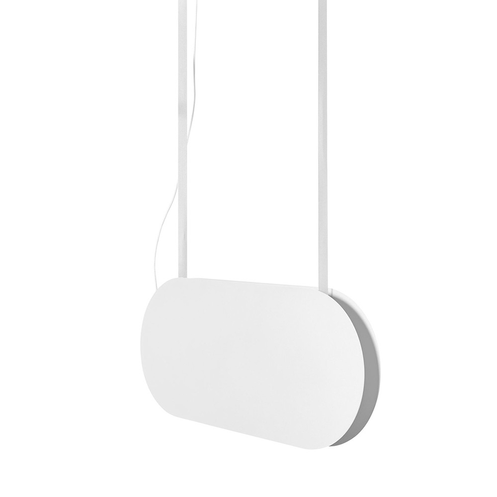 - taklampa, pendellampa - färg vit (Signal White RAL 9003) - material metall, aluminium - längd 80cm - bredd 5,2cm - höjd 35cm - total längd 180cm - vit polyesterflätad kabel 145cm - 2x tygband 145cm - vit metall takgaller 60,3cm - inbyggd LED - effekt 24W - IP20