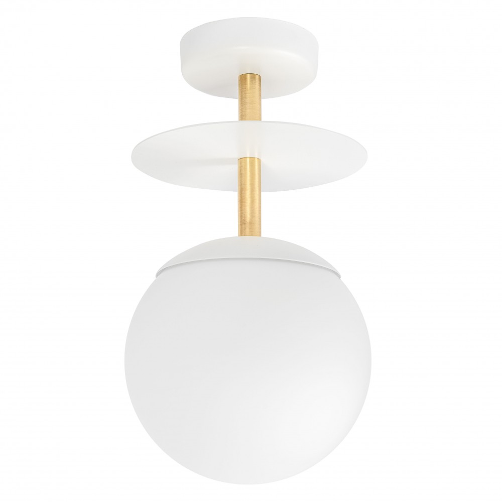- taklampa - metall / mässing / glas - vit / mässing / vit - höjd 37cm - diameter 20cm - diffusor i frostat vitt glas fi 20cm - strukturellt vitlackerat takgaller fi 12cm - metallskiva fi 20cm - tvåledarkabel 2 X 0,75mm2 - gänga E27 - max 15W