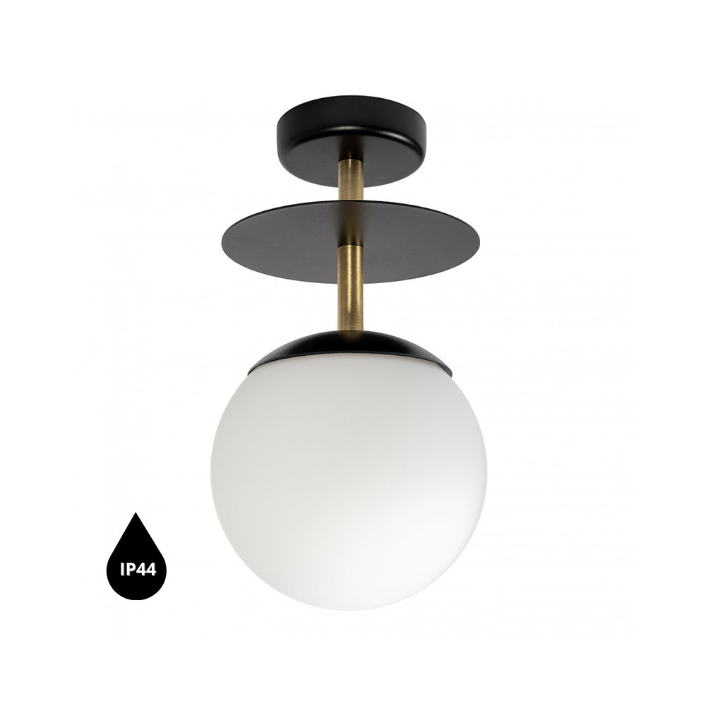 - taklampa - metall / mässing / glas - svart / mässing / vit - höjd 37cm - diameter 20cm - diffusor i frostat vitt glas fi 20cm - lackerat takgaller i strukturell svart fi 12cm - metallskiva fi 20cm - tvåledarkabel 2 X 0,75mm2 - gänga E27 - max 15W