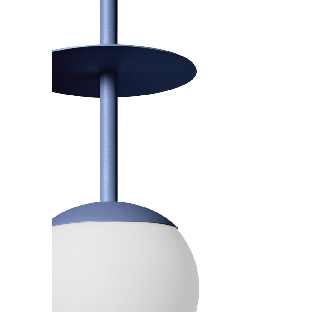- taklampa, pendellampa - material metall, glas - färg duvblå (Pigeon Blue RAL 5014) - längd 160cm - kabellängd 110cm - glasdiffusor matt vit fi 20cm - takgaller målad strukturblå fi 12cm - metallskiva fi 20cm - tvåledarkabel 2 X 0,75mm2 i blå polyesterfläta - tråd E27 - max 15W - IP20