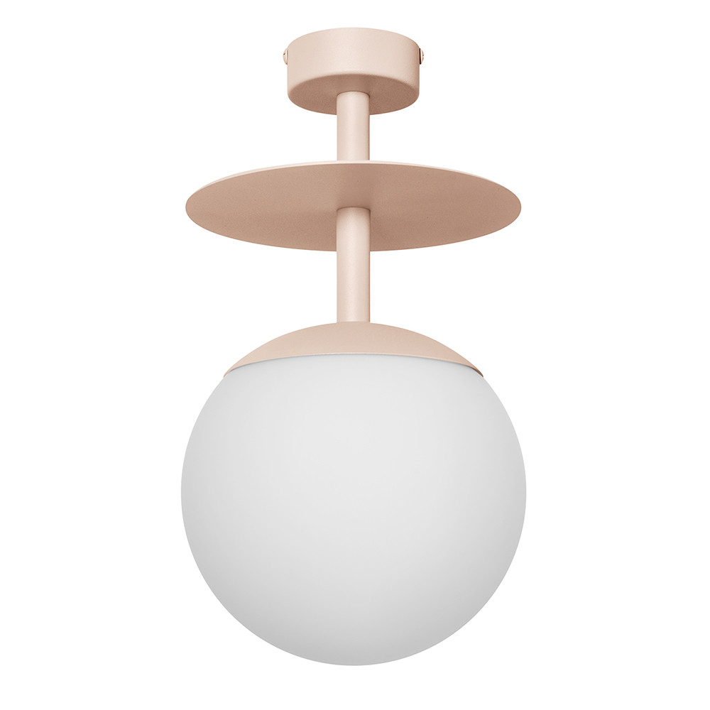 -taklampa - material metall, glas - färg beige (Soft Peach) - höjd 37cm - diameter 20cm - diffusor i frostat vitt glas fi 20cm - strukturellt beige lackerat takgaller fi 8cm - metallskiva fi 20cm - tvåledarkabel 2 X 0,75mm2 - gänga E27 - max 15W - IP20