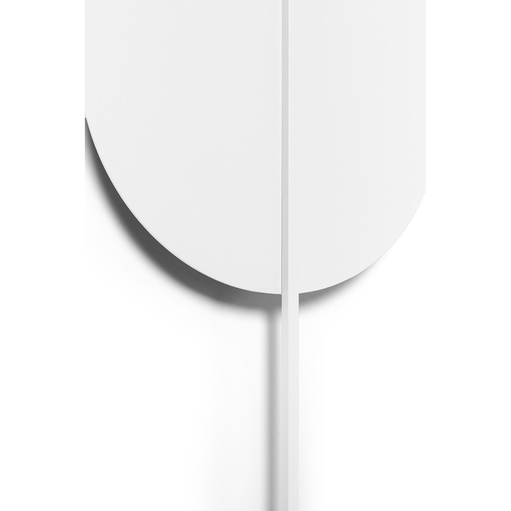 - vägglampa, väggfäste - färg vit (Signal White RAL 9003) - material metall - längd 3,8cm - bredd 21cm - höjd 56,6cm - vit lampskärm med dekorativt element (fäst med magneter på väggfästet) - vitt metallfäste 8x8cm - gänga 2xG9 - max 2x12W - IP20
