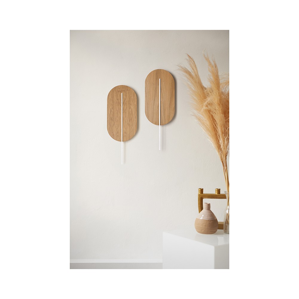 ROKKE WOOD är en vägglampa som representerar en dialog mellan arvet från modernistisk arkitektur och en ny syn på modern design. Den långsträckta, ovala formen är inspirerad av enkelheten och funktionaliteten i förkrigstidens urbana koncept i Gdynia, där estetiken var underordnad formens logik. I denna version i naturligt trä får armaturen en organisk ton - ljuset reflekteras mjukt av dess yta och skapar ett behagligt, nyanserat spel av chiaroscuro.