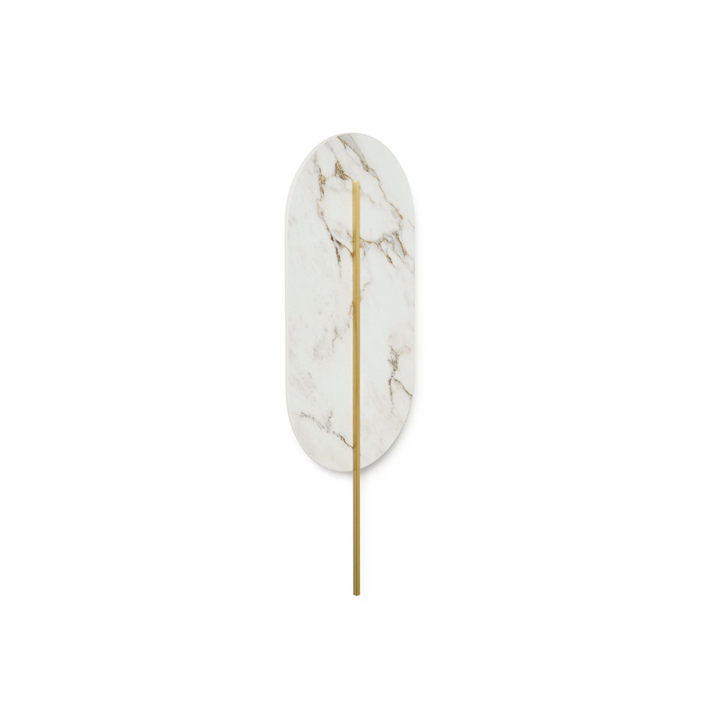 -vägglampa, väggfäste - stengodsets färg vit (Ballet) - färg på stången att välja: vit, svart, melon, mässing - material: metall, mässing, glaserat stengods - längd 3,8cm - bredd 21cm - höjd 56,6cm - lampskärm med mässingselement (fäst med magneter på väggfästet) - vitt metallfäste 8x8cm - gänga 2xG9 - max 2x12W - IP20