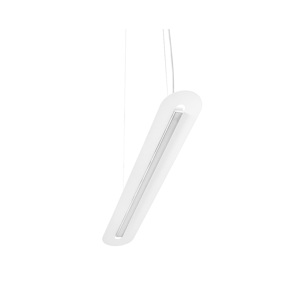 Lampkroppen är tillverkad av metall i färger från UMMO-paletten: vit RAL 9003, svart RAL 9005, rödorange RAL 2002, oliv RAL 6013, vilket ger den en modern och universell karaktär. Lampan är utrustad med en integrerad 28,8W LED-ljuskälla, som finns i två färgtemperaturer: 3000K eller 4000K. Detta gör att du kan anpassa belysningen efter dina individuella behov och önskemål. Lampans mått är: 138,4 x 15,4 x 5 cm. Den är upphängd i tunna stålvajrar, vilket ytterligare framhäver dess lätta och fina karaktär. Den totala längden på upphängningen är 150 cm, vilket gör att den kan användas i olika utrymmen.