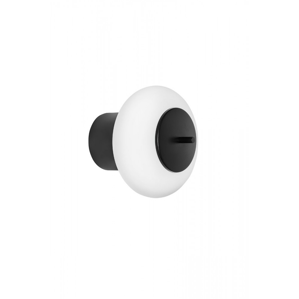 - vägglampa / väggfäste / plafond - metall / glas - svart / vit - djup 20,5 cm - diameter 22 cm - matt vit glasdiffusor fi 22 cm - strukturellt svartlackerat väggfäste fi 12 cm - tvåledarkabel 2 X 0,75mm2 - gänga E27 - max 15W
